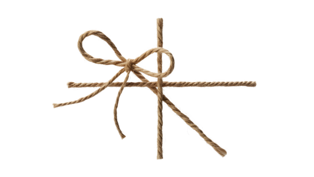 Rustic twine bow and string cross isolated on transparent background isolated on transparent background