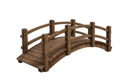Rustic wooden bridge arches naturally inviting path fantasy landscape detail craftsmanship timber