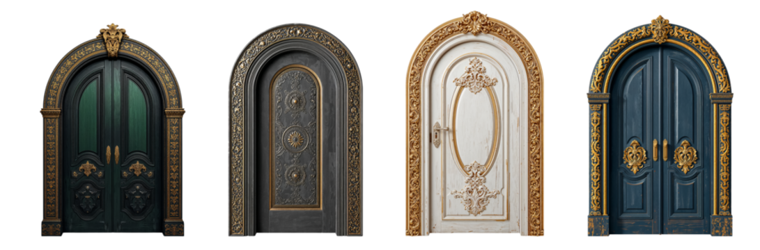 Vintage oval wooden door with gilding isolated on transparent background