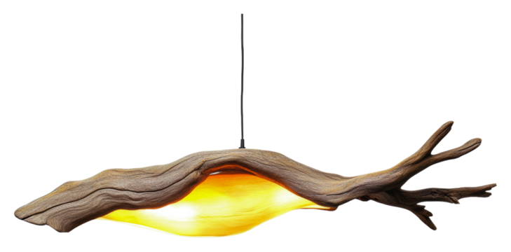 Unique driftwood pendant light for modern spaces isolated on transparent background