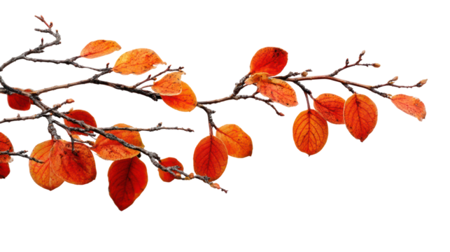 Twigs with Remaining Red-Orange Leaves in Natural Fall Colors on Transparent Background