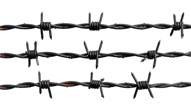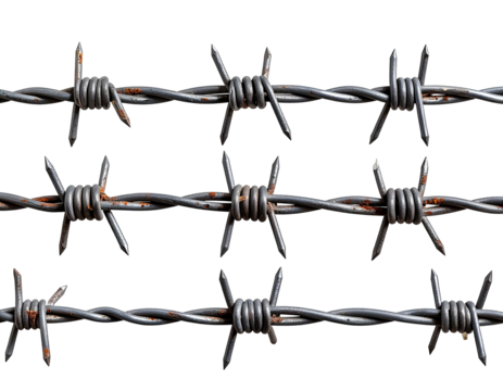 High resolution rusty barbed wire fence security danger sharp metal texture illustration isolated on transparent background