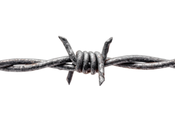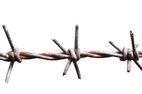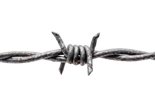 Rusty barbed wire creating a boundary, depicting restriction, security, and a challenging barrier on transparent background