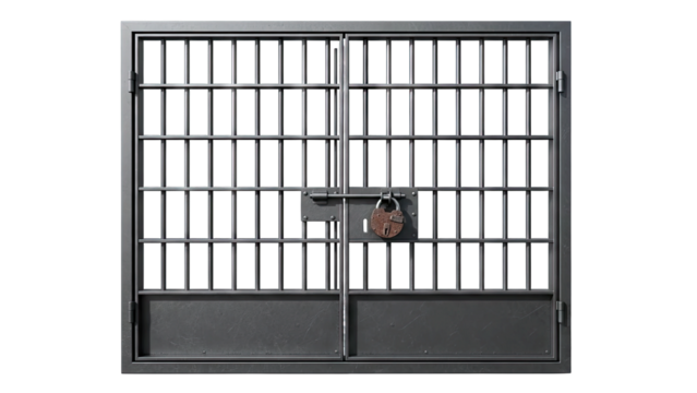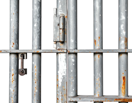 Isolated barred metal door, grungy appearance, prison, correctional facility, rusty