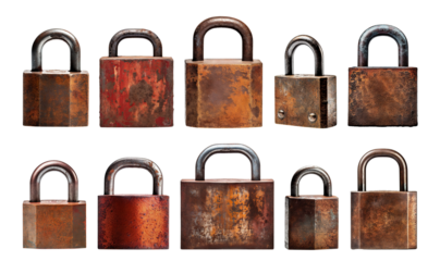 Set of old rusty padlocks, cut out