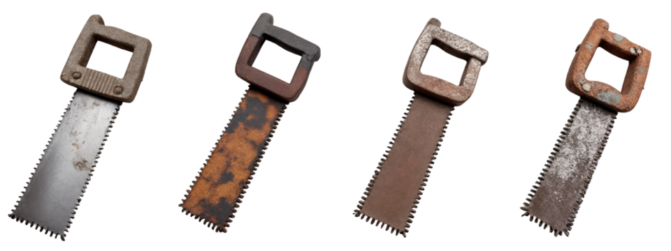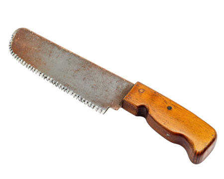 Old rusty hand saw isolated on transparent background, a vintage metal tool