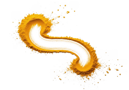 Abstract s shape swirl of bright yellow turmeric powder spice isolated on transparent background for culinary or health concept design element