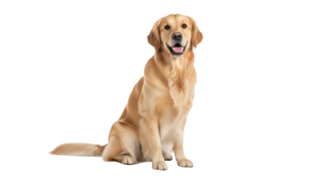 Isolated golden retriever sitting pretty looking at the camera with its mouth open and tongue showing
