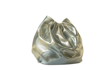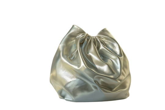 Cream-colored, draped,  bag.  Smooth,  pleated