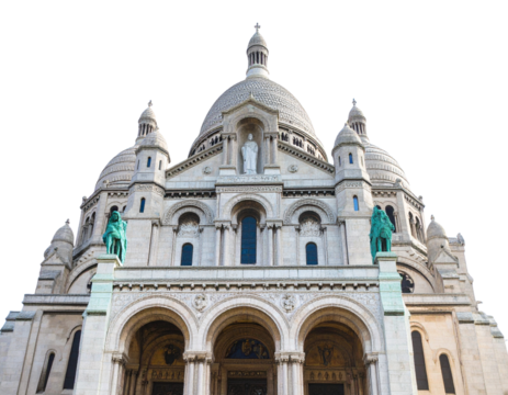 Sacre-coeur basilica in Montmartre, famous landmark in Paris, France isolated on white or transparent background, png file