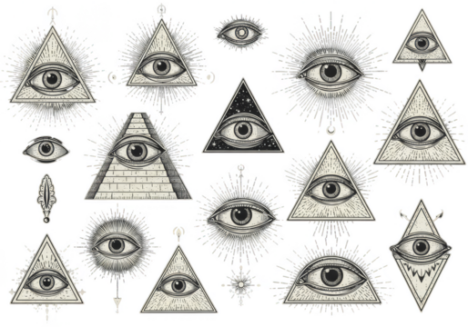 Etching mystical eye in lotus mandala transparent image. Spiritual vision. Sacred geometry isolated cutout. Esoteric symbol. Protective talisman cut out clipart design element png