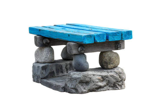 Ancient stone altar with blue wooden planks isolated on transparent background