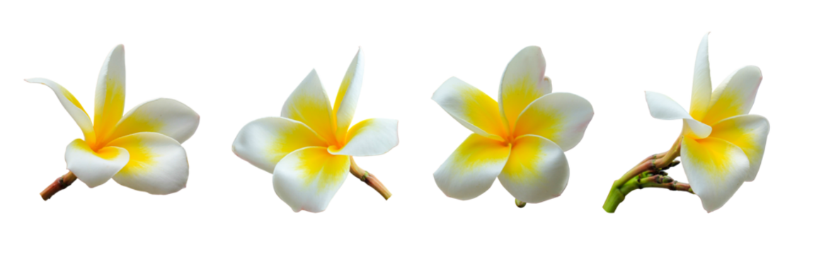 White plumeria flowers on a transparent background