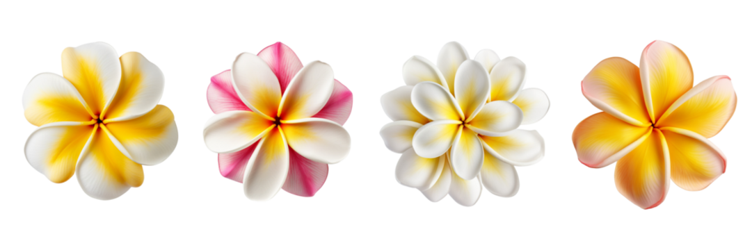 Set of plumeria isolated on a transparent background