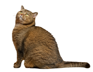 funny cat in full body sitting and looks in a bad mood  isolated against transparent background