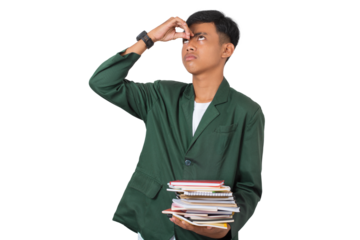 Transparent background: sad man with cupped hands wearing plaid shirt