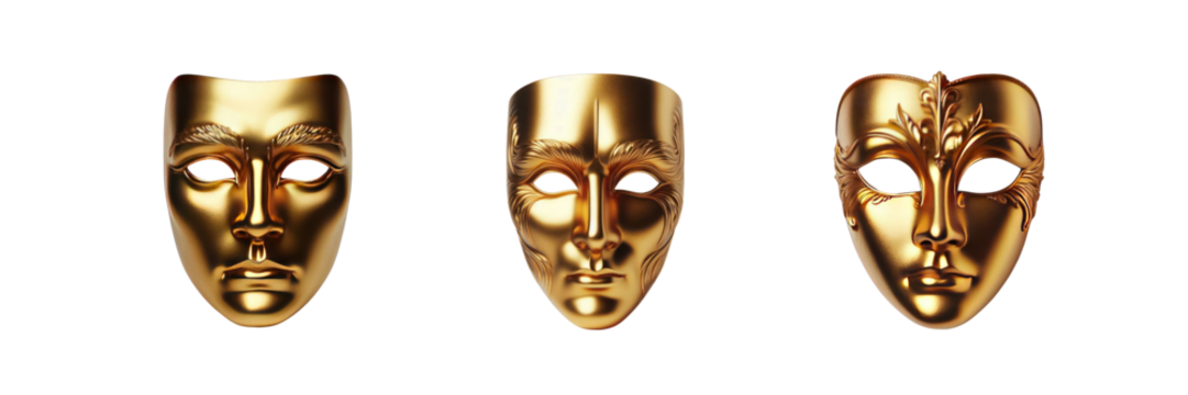 Set of Theatrical masks illustration, isolated over on transparent white background