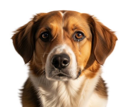 Emotional dog portrait soft lighting sadness isolated on transparent background