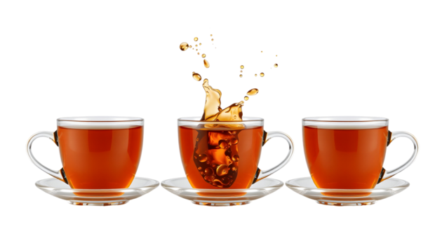 Tea Cups with Splashing Tea, Transparent Background