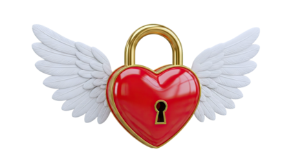 Round brass padlock with red keyhole isolated PNG, security lock for safety and protection on transparent background