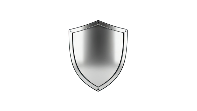 A metallic shield with a vibrant blue glowing outline and a central network symbol represents robust digital security, data protection, and advanced technological defense for cybersecurity