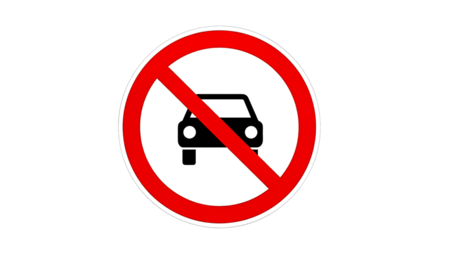 No cars allowed sign with red circle and prohibition symbol