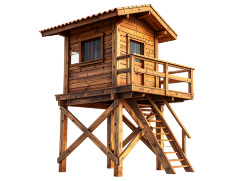 Four-level scaffolding platform with ladder and safety railings, cut out - stock png.
