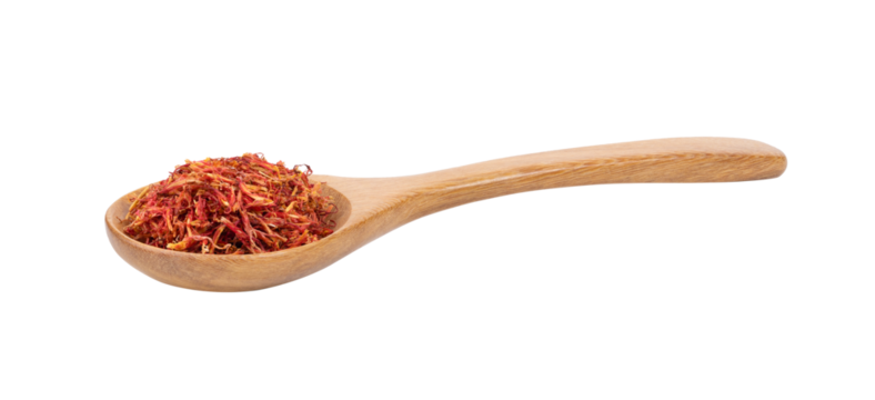safflower in wood spoon on transparent png