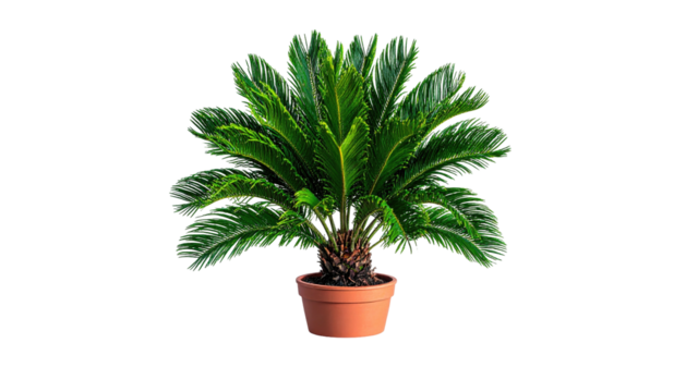 Sago palm tree with green fronds on transparent background, symbolizing tropical landscaping and nature