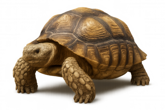 African spurred tortoise standing, looking forward, animal symbol of longevity and wisdom on a transparent background