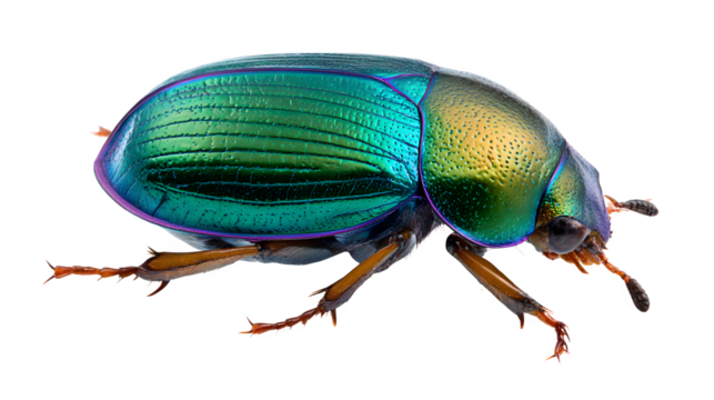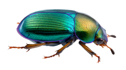 A single, vibrant water beetle, gliding across an invisible surface, isolated on Transparent Background