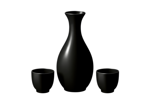 Isolated sake bottle and cups, traditional Japanese ceramic set, elegant drinkware