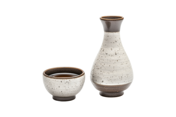 Ceramic sake set with tokkuri and ochoko on a transparent background