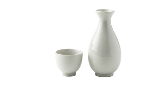 Elegant sake set ceramic bottle and cup japanese drinkware traditional alcohol beverage still life photography on transparent background