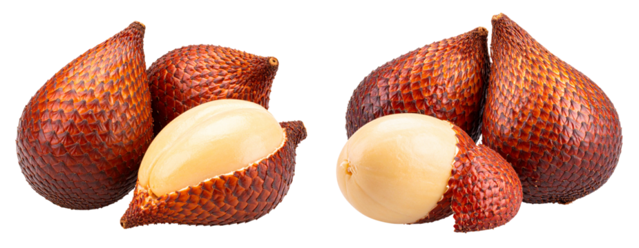 Salak (Snake Fruit) Peeled and Unpeeled isolated on white background. Suitable for marketing or business purposes. PNG file