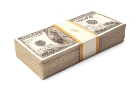 Realistic bundle of dollar bills neatly stacked, isolated on a white background.