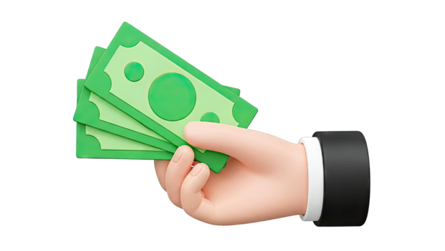 Hand passing a stack of stylized dollar bills