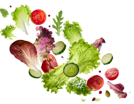 fallend gemischter Salat isoliert auf weißen Hintergrund, freisteller