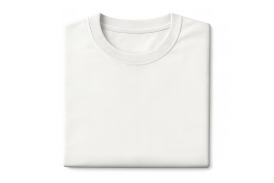 Folded plain white t-shirt mockup isolated on transparent background, perfect for showcasing your designs