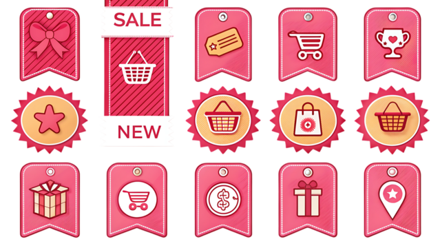 Red sale tags vector on transparent background for marketing