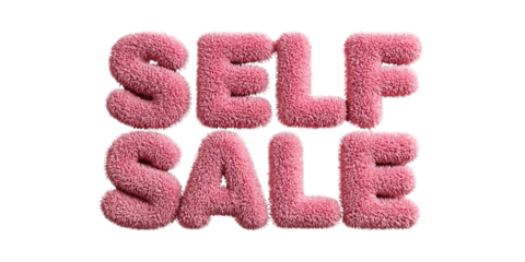 Fluffy pink SELF SALE text on black background Concept of promotion, discount, and special offer with furry, soft, and vibrant 3D typography