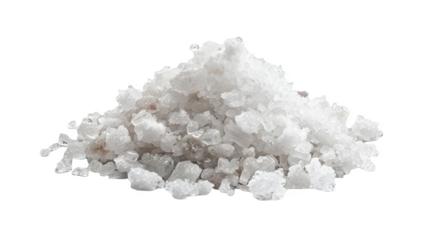 Coarse sea salt spilling from a wooden bowl isolated on transparent background
