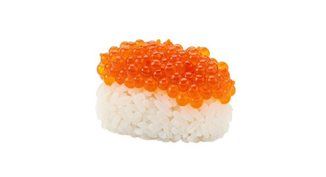 Salmon Nigiri Sushi with Ikura Roe on White Background.