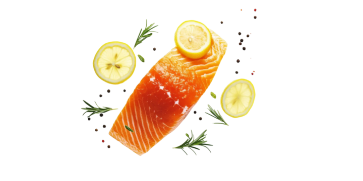 Falling salmon fillet with rosemary and lemon slices
