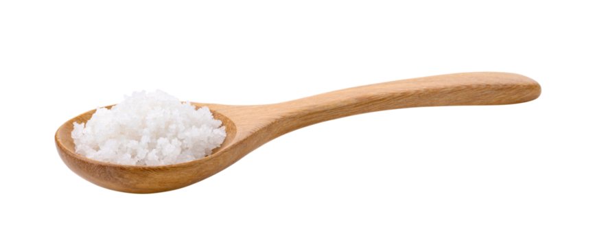 Heap of salt isolated on a transparent background without shadows from above, top view, png