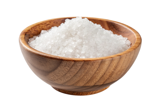 Wooden  bowl  filled  with  crystal  white  sea  salt  isolated  against  a  black  background