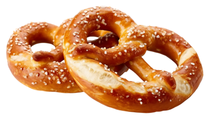 Realistic illustration of a salted pretzel with a glossy, golden-brown surface, showcasing its classic knot shape on a white background.