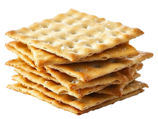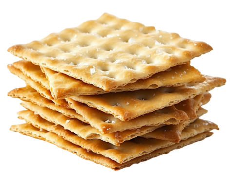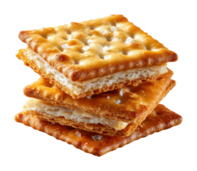 A stacked pile of crispy saltine crackers, isolated on a transparent background.
