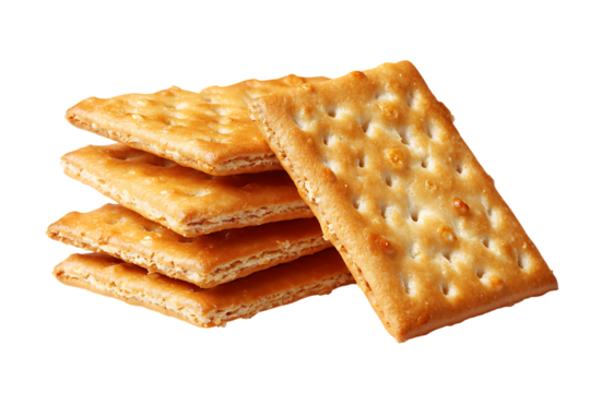 floating pile of crispy saltine crackers, isolated on transparent background - generated by ai