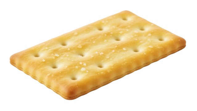 Close-up of a single saltine cracker on a transparent background, isolated snack food